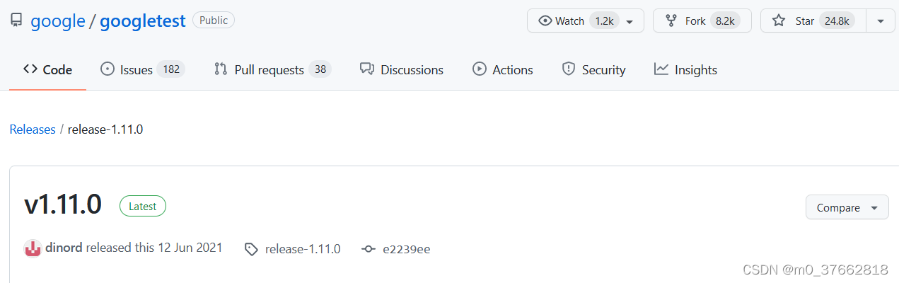 1.打开https://github.com/google/googletest要下载Release版本的源码