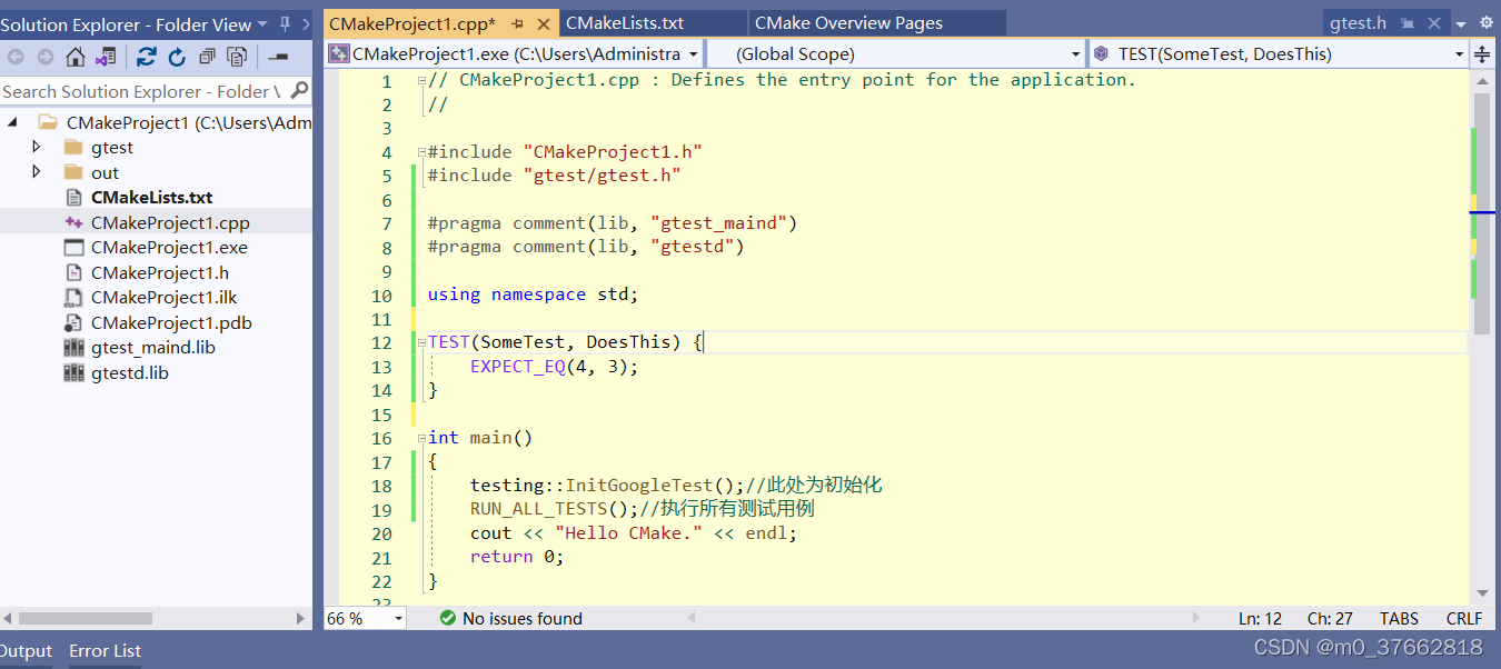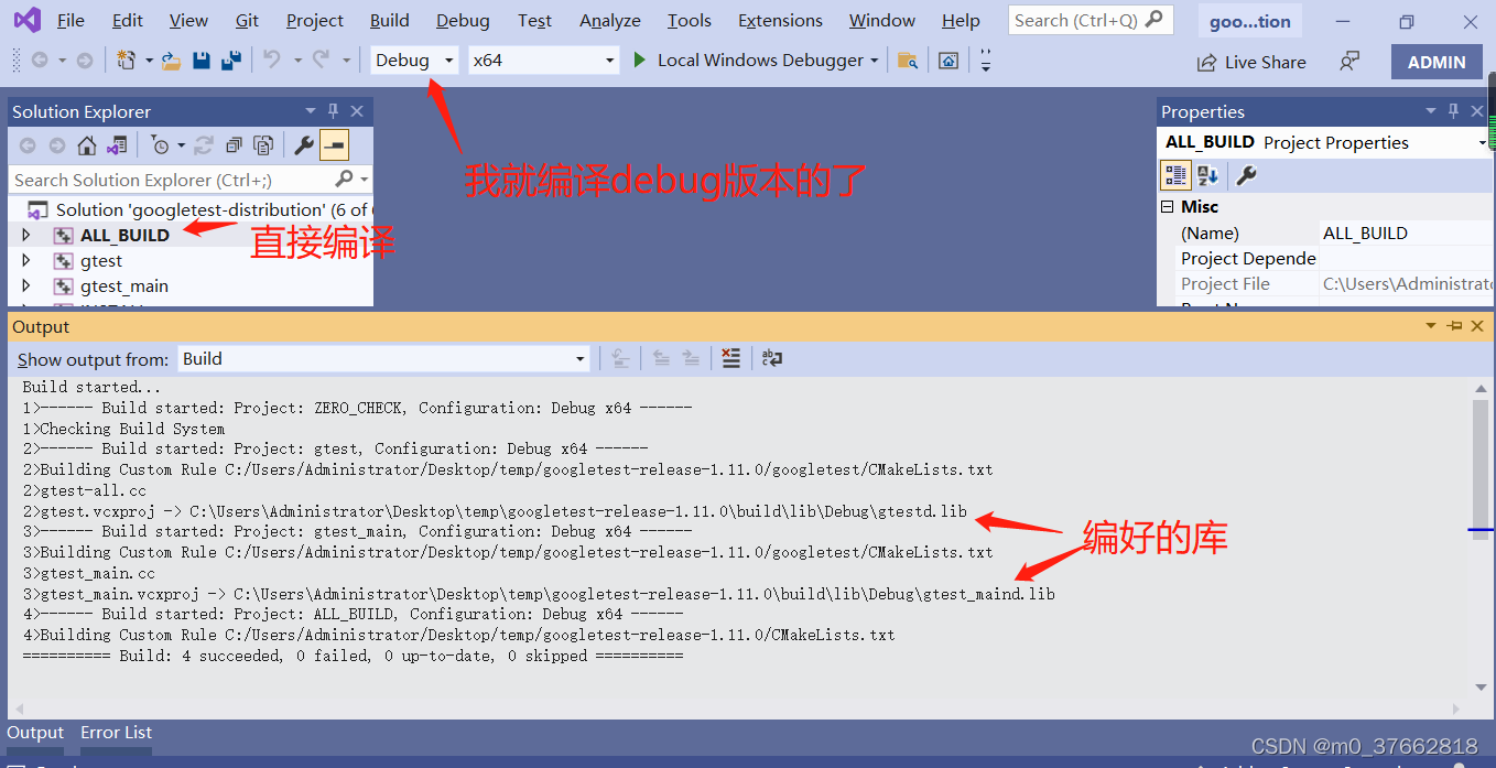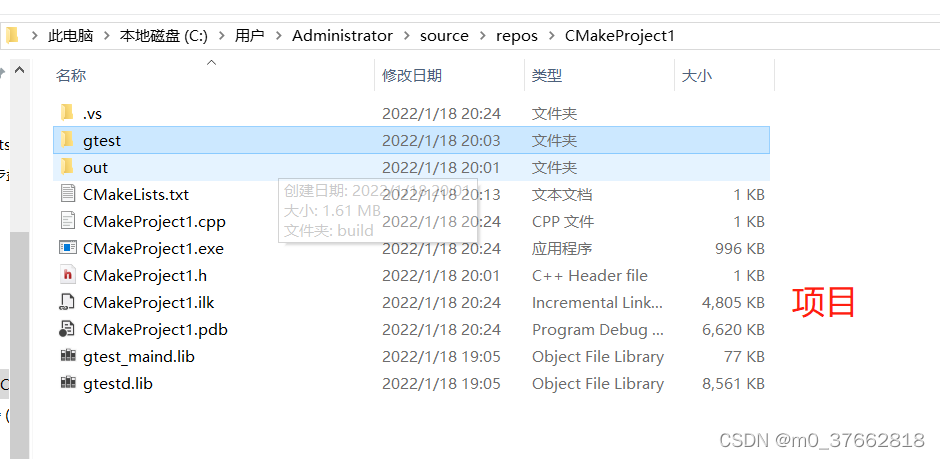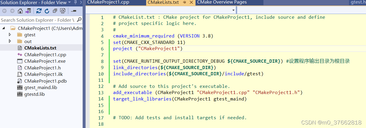 6.接下来要搭建cmake环境了,我这里就只考虑了debug版本,复制gtest_maind.lib,gtestd.lib,还有相关的头文件到项目目录下。
