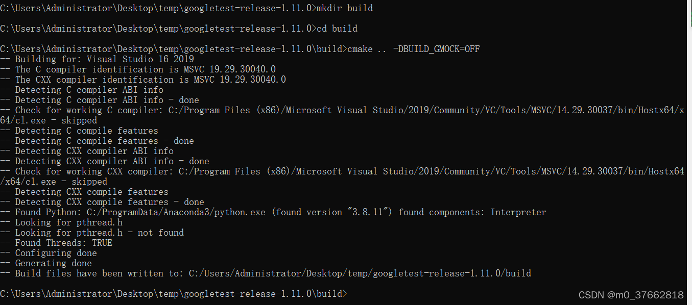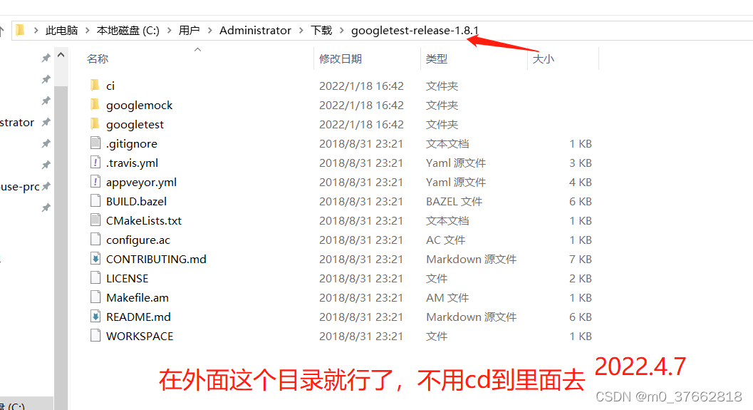(注:不用cd到那个googletest文件夹中,在最外层文件夹就行了)