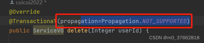 使用junit单元测试异常用例的时侯,打印报事务异常,通过查看源码,提示是一个全局的rollback标记导致的。也查阅了些相关资料,知道事务回滚有传播性,默认的回滚事务会从里面传播到外面。然后在对应的方法加上(propagation=Propagation.NOT_SUPPORTED),限制事务传播范围,再运行测试就没有异常报错了。